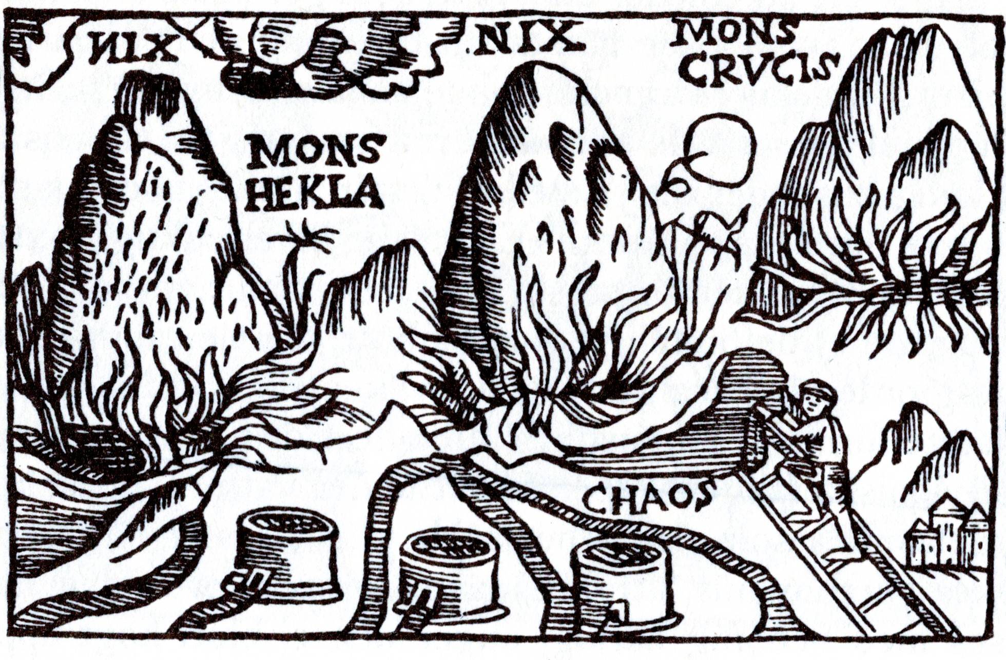 Ég geri ráð fyrir að eðli fjallanna á Íslandi sé nú nógu vel þekkt öllum, því auk þess sem eldri menn hafa sagt mér, hef ég, í Charta Gothica minni sem viðbót við Ptolemæus, lagt fram sannanir fyrir því að staðsetning og eðli þessara fjalla sé sérkennilegt, það er að hæstu tindar þeirra eru þaktir næstum eilífum snjó, en við rætur þeirra brennur brennisteinseldur óaflátanlega án þess að gleypa sjálfan sig. Ef einhver nálgast getur hann auðveldlega kafnað af yfirþyrmandi ryk- og öskumassa, helst þar sem eru rauðglóandi gil með ösku frá brunnum fjöllum og dölum. Vegna hægfara vaxtar brennisteinsryksins fara þessar holur, svo að segja, eftir ákveðið tímabil, yfir á nýtt stig og eru tilbúnar fyrir endurtekna glæðingu.